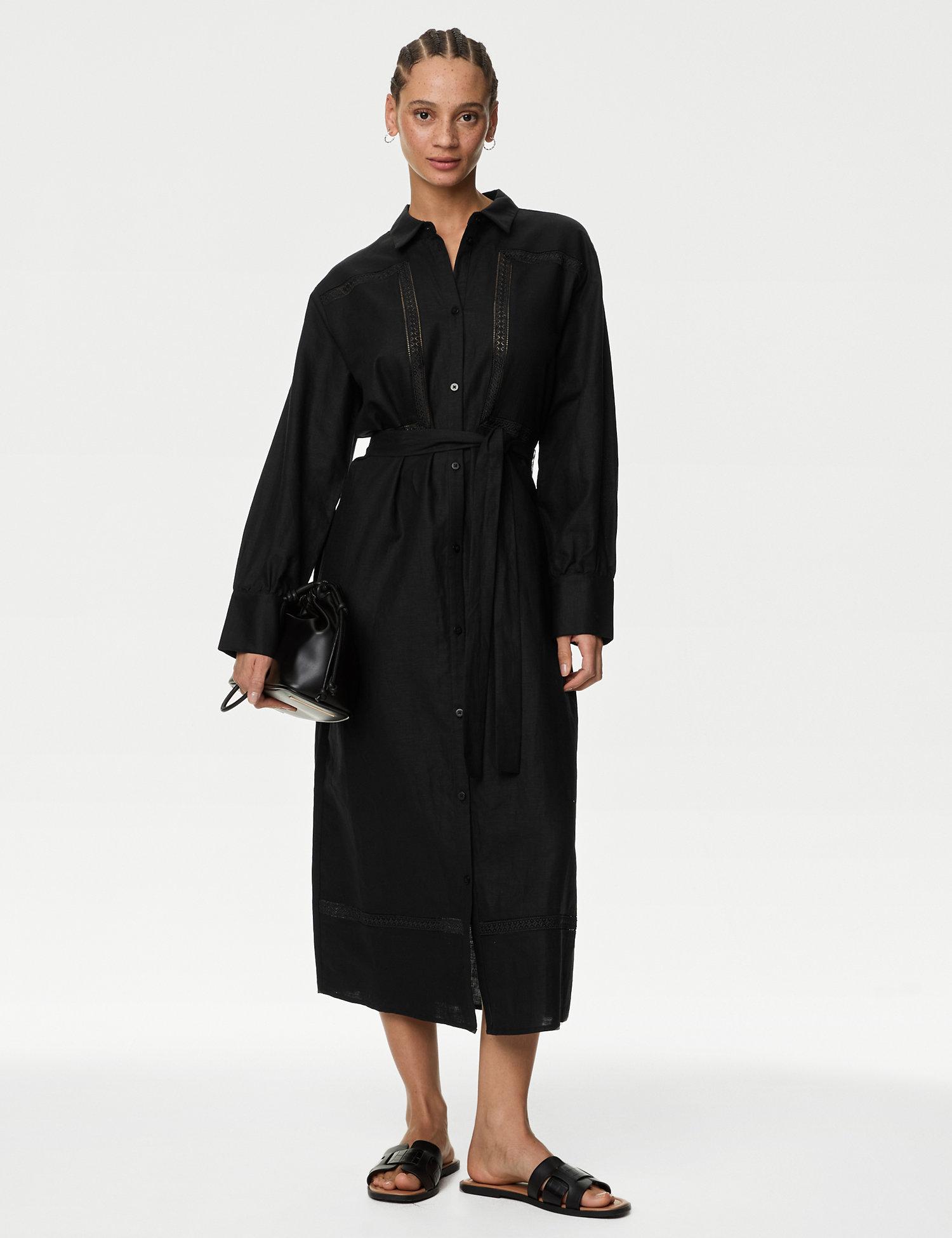 Home Products SALEDressesDressesMarks & Spencer THE SALE Linen Rich Round Neck Knee Length Shift Dress